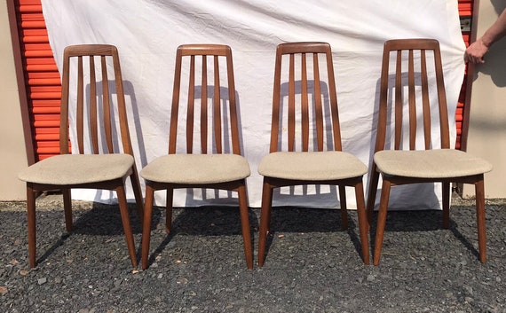 Vintage Mid Century Modern 4 Teak Wood Dining Chairs Matched Set